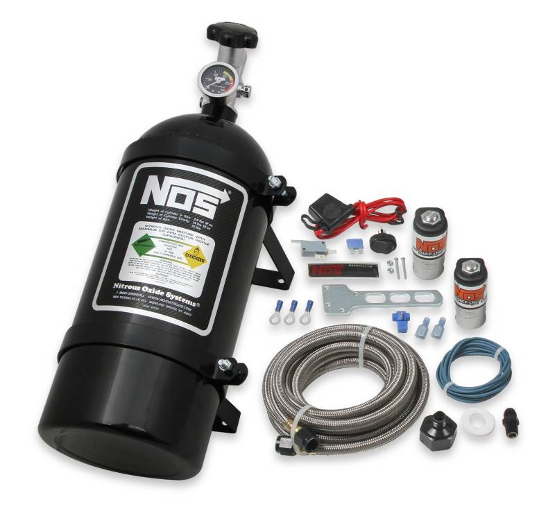 NOS is proud to now offer its popular Powershot and Super Powershot wet nitrous systems in black. The Powershot offers a fixed 125 horsepower increase while the Super Powershot give you adjustable power from 100-150 horsepower. These systems utilize a 1/2 inch thick injector plate and gives you a great power surge at the hit of a button.