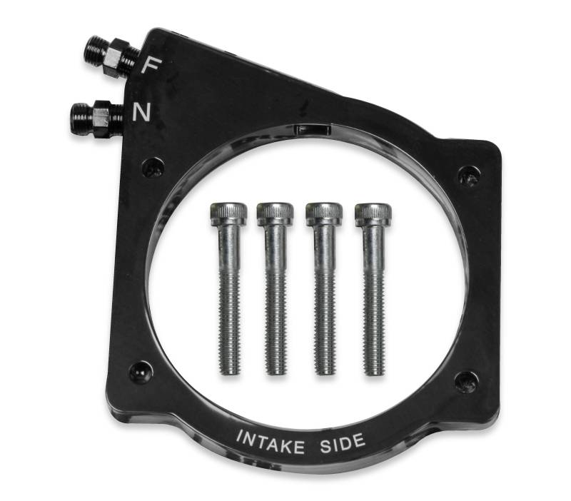 NOS is now offering a black version of its popular GM LS-engine wet nitrous system for 102mm or 105mm cable driven throttle bodies. The throttle body injector plate is made from 1/2 inch thick billet 6061-T6 aluminum then anodized black for great looks under the hood. This system includes a pair of black top solenoids, black 10 lb. bottle, along with mounting hardware and instructions.