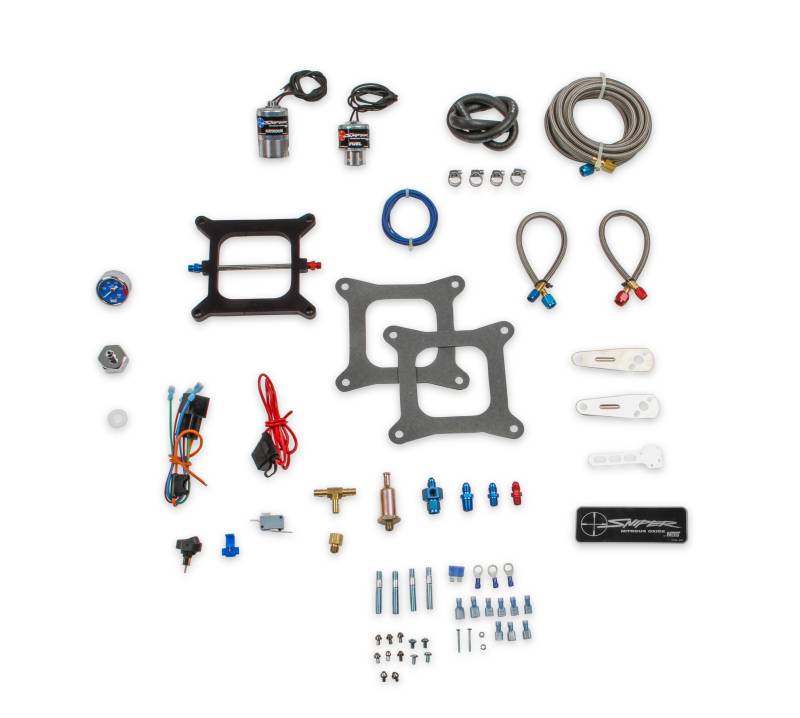 NOS have built on the very popular, budget friendly, Sniper nitrous kits for those who need a little more power from their engines. The new Sniper 250 kits step up the power potential to an additional 250 horsepower, in a low cost single nitrous plate kit, for the popular carburetors, Holley 4150 (Square Flange) PN 07002NOS, 4500 (Dominator) PN 07003NOS & Spread Bore (Quadra jet) PN 07007NOS.\nThese single stage wet kits have everything needed to add some extra power to your engine. The kit includes a 10 lb. Sniper orange nitrous bottle, 14 ft. -4AN feed line, stainless bar nitrous plate and the new, large body, Sniper Solenoids. Also included is all the hardware required as well as nitrous and fuel jetting for power levels of 150, 175, 200 & 250 horsepower, additional jets are .\nFor a budget friendly, big power nitrous kit, look no further than the Nitrous Oxide Systems Sniper 250 kits.