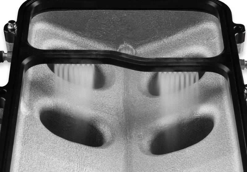 This NOS plate designed to bolt between the upper and lower intake manifold on Holley Hi-Ram LS manifolds. This sandwich-style plate gives you an easy way to add nitrous oxide to your Hi-Ram equipped LS engine. Our plate is machined from billet 6061-T6 aluminum, laser engraved with NOS logo, then anodized for great looks and excellent corrosion protection.\nOur 1-piece plate features machined passages that precisely spray into the center of each cylinder. Plate includes jetting for up to 250 horsepower but is capable of supporting 1000+ horsepower. The plate is made from billet aluminum with passages machined directly into the plate so there is no need to worry about spray bars breaking or spinning. Includes NOS plate, gasket, jet holders, and jets.