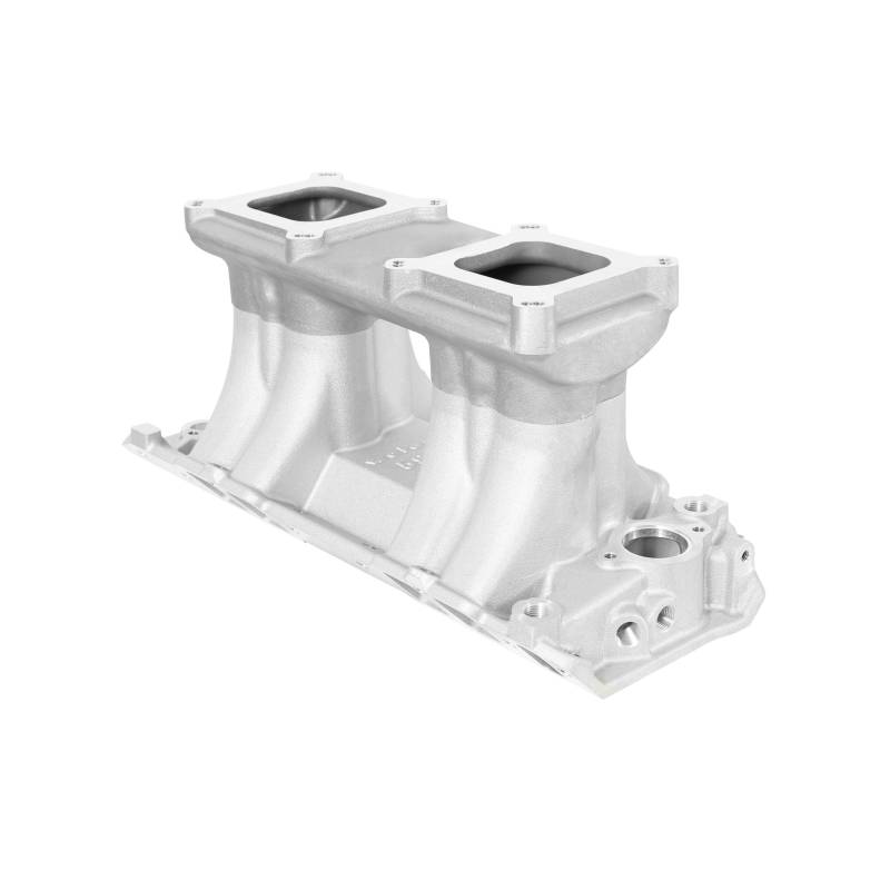 2,800 to 8,000 RPM. The WEIAND Hi-Ram, with it's patented D-shaped port runners and large plenum chamber, provides optimum velocity of the air/fuel mixture to the cylinder head intake ports. For maximum performance in a naturally aspirated competition application, the WEIAND Hi-Ram is the manifold of choice! This manifold is designed to be used with performance oval port heads.\nmarine applications where high RPM performance is required. The effective RPM range is between\nWeiand Nostalgia series intakes are proudly cast and machined in the USA.\nThis manifold is part of the Weiand Nostalgia Series of intake manifolds. Weiand Nostalgia Series intake manifolds are made using the original tooling, and may have minor appearance imperfections that do not affect the functionality of the part. These minor blemishes are a natural part of the casting process when using the original sand casting tooling.\nWe support all areas of the vintage, show, and nostalgia car hobby, and want to continue to produce these lower volume manifolds using the original tools. There is no need to search for that vintage intake at swap meets or on the internet when you can buy the real deal new from Weiand!\nHI-RAM SERIES: These tunnel ram manifolds are used primarily in drag racing, tractor/truck pulls and performance\nIf you are not satisfied with a Nostalgia Series intake, we will gladly exchange it or refund your money. Our tech service representatives can be reached at 1-866-464-6553.