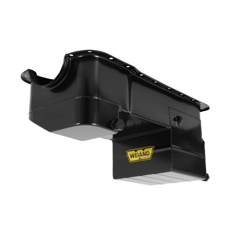 Weiand continues to expand oil pan kit offerings!\nYou remember the old days…. when gassers ruled the strip in the 50's, 60's, and early 70's.\nThey were nose up with speed parts easily seen underneath. Weiand aluminum oil pans helped them get down the\nstrip with 7-quart oil capacity and fins to keep them cool!\nTimes and styles have changed, but Weiand is back and proud to announce their latest release of fabricated oil pan\nkits for Big Block Chevy, GM LS-engines, Small Block Ford, and Mopar B/RB engine applications!