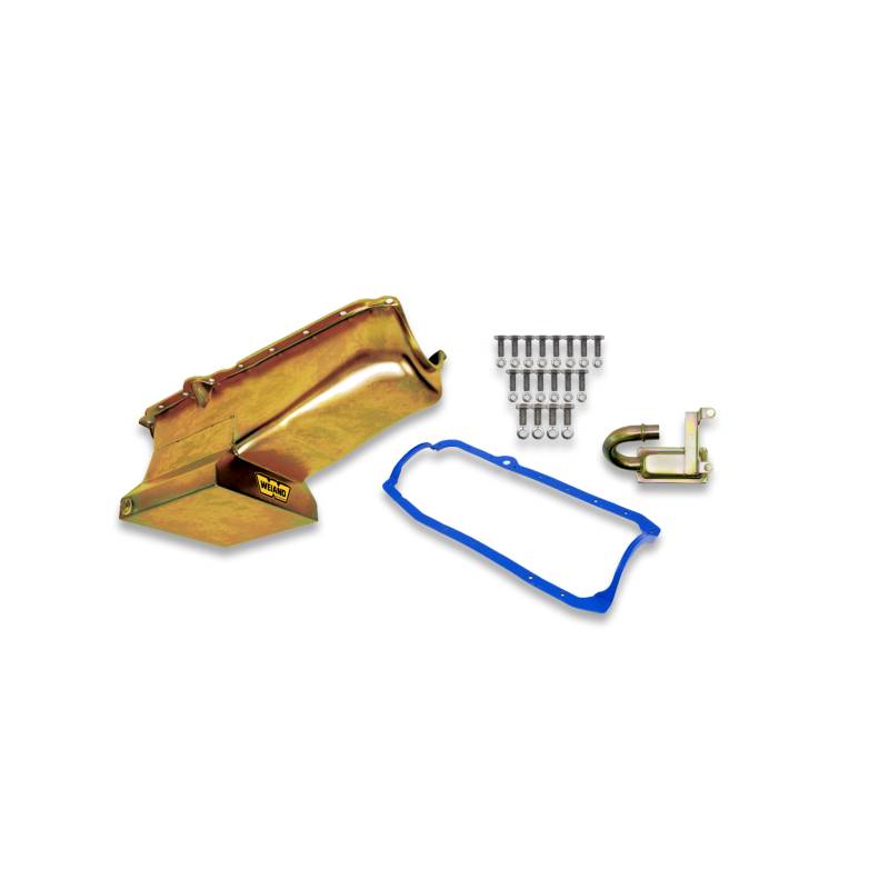 Save Time and aggravation with these money saving Fabricated oil pan kits!\nEach kit packages everything you need to get the job of changing an oil pan done.\nComponents included in each kit include:\n• Application specific oil pan\n• Oil pan gasket\n• Oil pump pickup\n• Pan mounting bolt kit