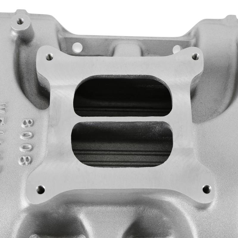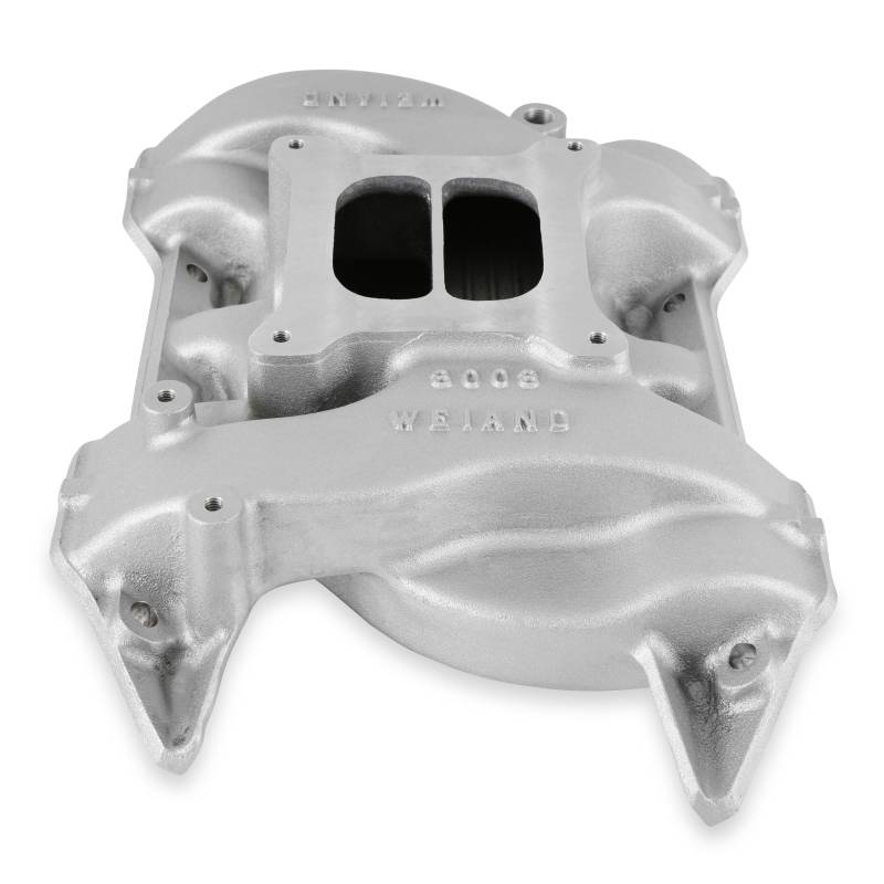 Action +Plus Intake Manifold 361, 383, 400 V8\nIf you are not satisfied with a Nostalgia Series intake, we will gladly exchange it or refund your money. Our tech service representatives can be reached at 1-866-464-6553.\nWeiand Nostalgia series intakes are proudly cast and machined in the USA.\nThis manifold is part of the Weiand Nostalgia Series of intake manifolds. Weiand Nostalgia Series intake manifolds are made using the original tooling, and may have minor appearance imperfections that do not affect the functionality of the part. These minor blemishes are a natural part of the casting process when using the original sand casting tooling.\nWe support all areas of the vintage, show, and nostalgia car hobby, and want to continue to produce these lower volume manifolds using the original tools. There is no need to search for that vintage intake at swap meets or on the internet when you can buy the real deal new from Weiand!