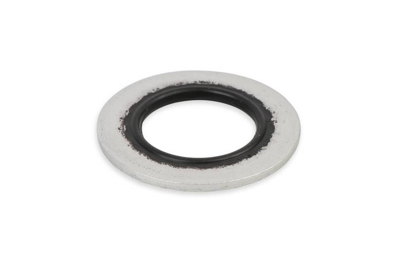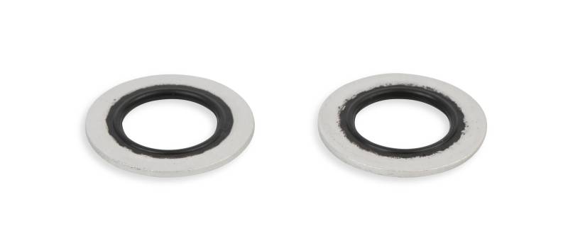 The Stat-O-Seal is very simply the best sealing washer available. It consists of a synthetic rubber "O" ring mechanically locked to the I.D. of an aluminum washer. When tightened, the "O" ring is compressed, forcing the sealing surfaces around the bolt shank. They will form a positive seal over a temperature range of -85° to +450° F. They provide the advantages of an "O" ring type seal without the necessity of machining "O" ring grooves into the part. In any application where you are now using a copper or aluminum sealing washer, the Stat-O-Seal will do a better job.
