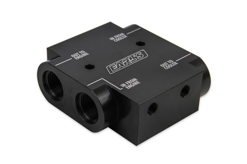 To insure quick warm up under cold weather conditions, use our oil-stat. This uniquely designed product controls oil temperature like a thermostat controls water temperature in a radiator. Designed for passenger car and light truck usage with Earl's Temp-A-Cure(TM) oil coolers. Billet 6061-T6 aircraft aluminum with three sensor ports.