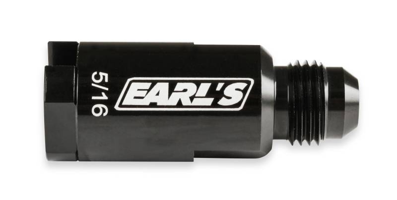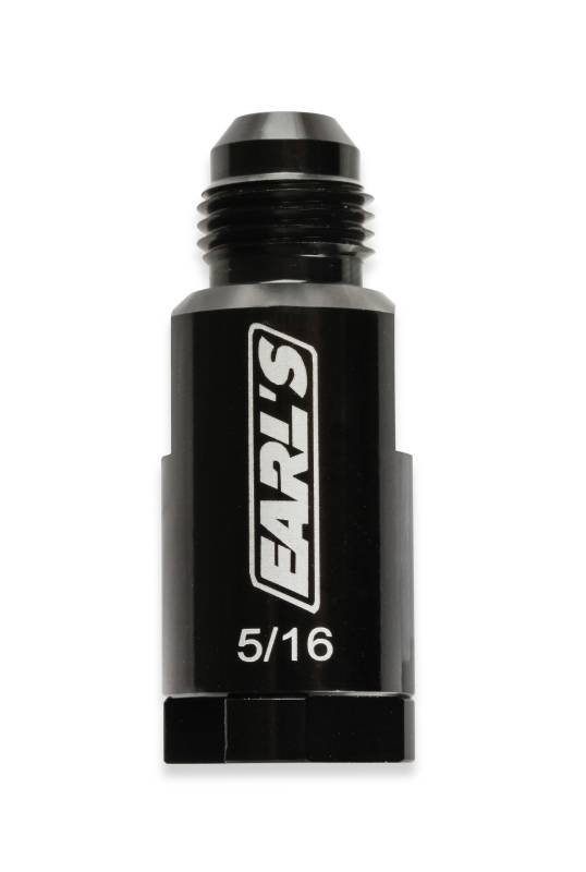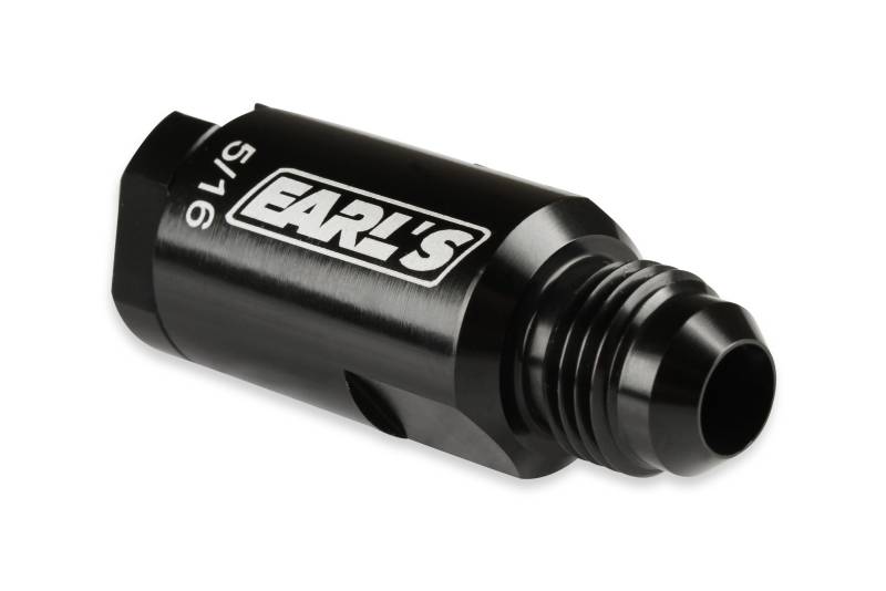 The Earl's Vapor Guard™ product line has been expanded to include O.E. fuel line quick connect fittings. These adapter fittings allow an easy way to re-use existing OE fuel rails, fuel filters, and other components when doing an engines swap, or upgrading to Vapor Guard™ (or other AN Plumbing). Each fitting has a -6 AN Male Flare, and a metal retainer nut for a secure leak-free connection to the 5/16" or 3/8" SAE style fuel tube. Constructed from 6061 T6 aluminum w/ black anodized finish.