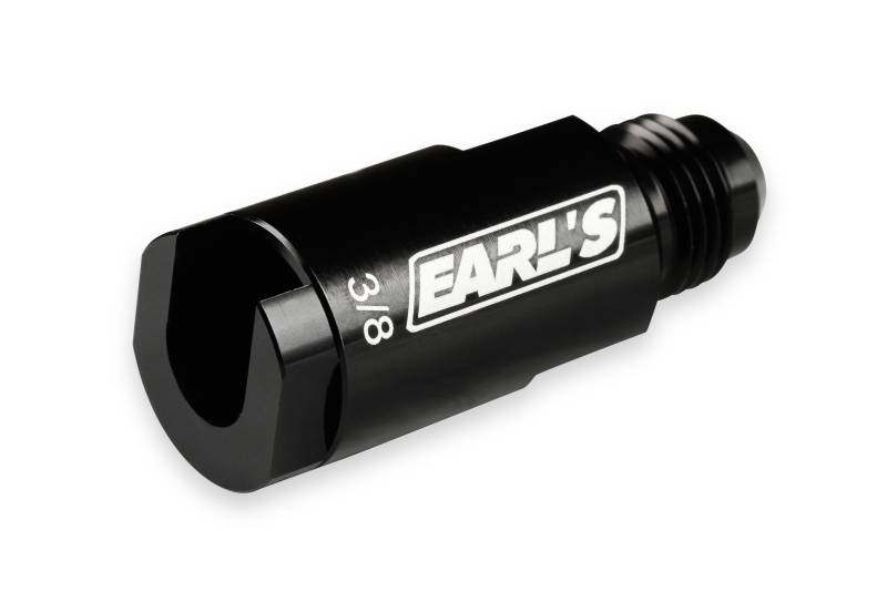 The Earl's Vapor Guard™ product line has been expanded to include O.E. fuel line quick connect fittings. These adapter fittings allow an easy way to re-use existing OE (Original Equipment) fuel rails, fuel filters, and other components when doing an engines swap, or upgrading to Vapor Guard™ (or other AN Plumbing). Each fitting has a -6 AN Male Flare, and a metal retainer nut for a secure leak-free connection to the 5/16" or 3/8" SAE style fuel tube. Constructed from 6061 T6 aluminum w/ black anodized finish.
