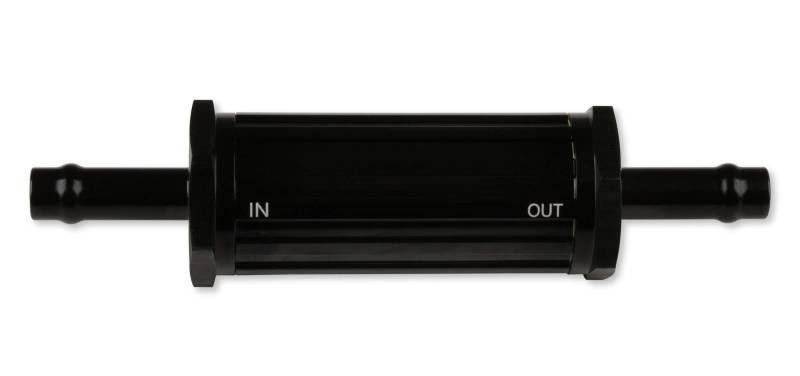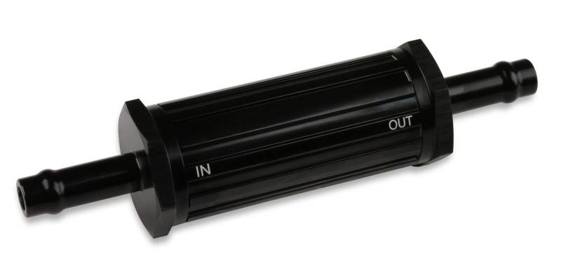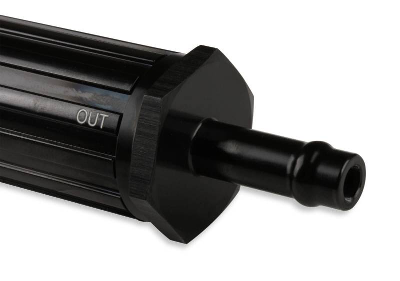 Billet aluminum pre-filter (100 micron) for use before the fuel pump in EFI & carburetor applications. Use w/ Vapor Guard® fuel hose & clamps.