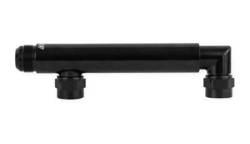 The Earls Adjustable Coolant Cross-Over Tube simplifies the plumbing of a Remote Mounted Electric Water Pump by eliminating T's, Y-Blocks, and extra hose ends. The design of this special cross-over tube allows adjustable length & can be used as a coolant inlet or outlet on your GM LS Engine. Features (1) -16 AN Male Flare & (2) -12 AN Female Swivels. Billet aluminum construction w/ two O-ring seals & black anodized finish.