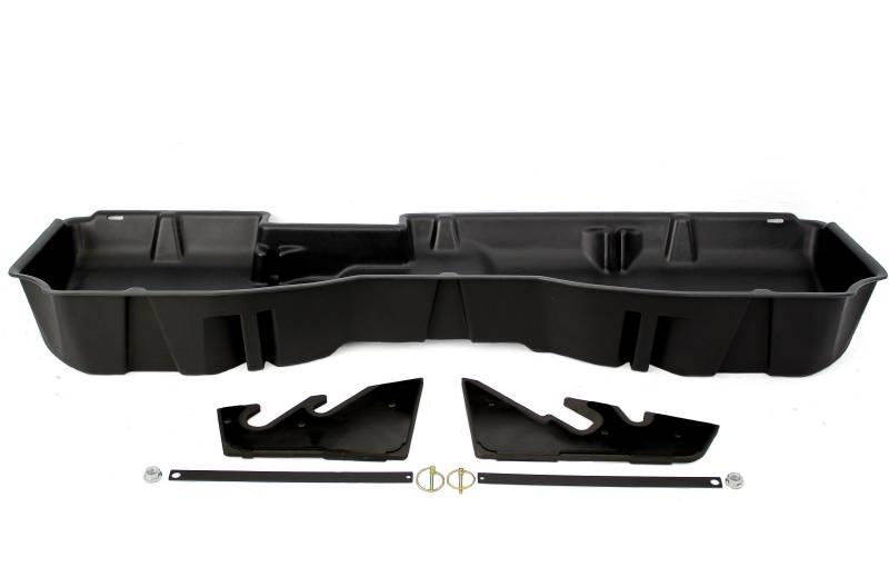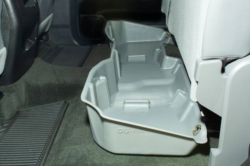 DÜHA 10300 Underseat Storage / Gun Case - Jet Black Whether you're a contractor, sports enthusiast, or anyone who values organized and secure storage, the DÜHA Underseat Storage System is the ultimate under seat truck storage solution for seamless truck storage integration. This innovative truck storage system maximizes space, enhances organization, and keeps your guns, tools, and gear safe and secure. Proudly roto-molded and Made in the USA, the DÜHA Underseat Storage System comes with a Limited Lifetime Warranty, reflecting the manufacturer's confidence in its quality and durability. The DÜHA Underseat Storage System features a durable, heavy-duty roto-molded construction which doesn't allow for flexing and bending. It also includes an easily removable two-piece gun rack/organizer, making it compliant with legal gun case regulations in most states. This allows you to safely store up to two guns, one of which can have a scope. You can also remove the dividers to store larger items. The DÜHA Underseat Storage System seamlessly integrates into your truck's interior, providing a factory-like appearance. It's make/model-specific fit guarantees optimal use of available space without taking up leg room. Elevate the organization and security of your truck's interior with this reliable and purpose-built under seat storage system. Fitment Notes: Minimal tools are required. Instructions are available with purchase or at our resources page. This DÜHA Underseat Storage System is custom designed to fit specific Y/M/M Crew Cab trucks and will NOT fit Double Cab models. Quick Installation: Simple installation with easy instructions Durable Construction: Heavy duty roto-molded construction doesn't allow for flexing and bending Seamless Integration: Exact fitment for your Y/M/M truck. Please double check part numbers Space Optimization: Better use of under seat space to fit guns, tools and gear Includes dividers/gun racks for customized organization