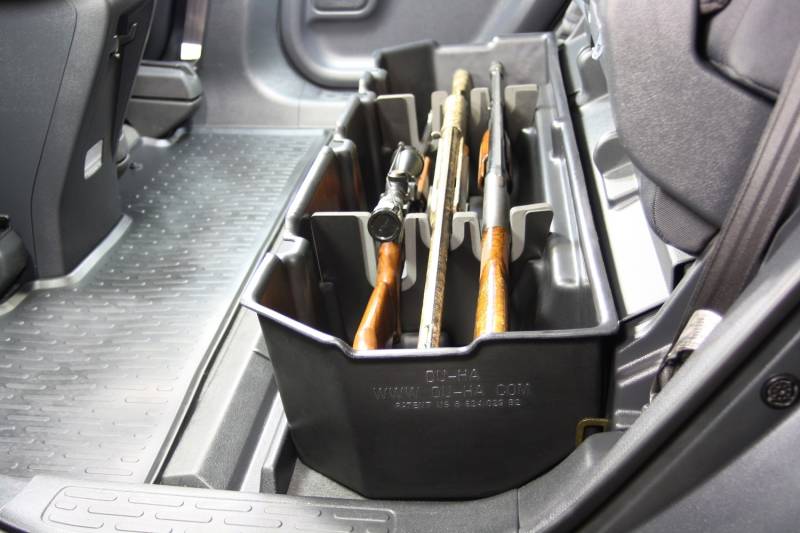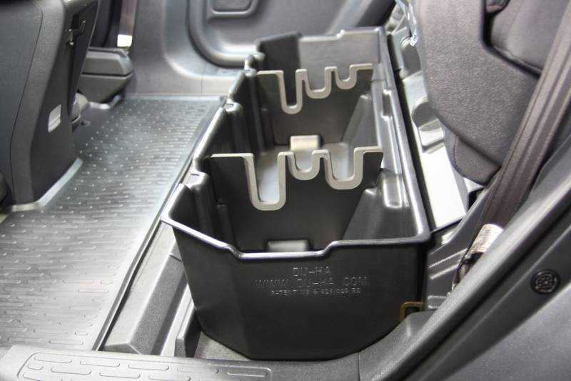 DÜHA 50074 Underseat Storage / Gun Case - Black Whether you're a contractor, sports enthusiast, or anyone who values organized and secure storage, the DÜHA Underseat Storage System is the ultimate under seat truck storage solution for seamless truck storage integration. This innovative truck storage system is stronger than factory dividers, maximizes space, enhances organization, and keeps your guns, tools, and gear safe and secure. Proudly roto-molded and Made in the USA, the DÜHA Underseat Storage System comes with a Limited Lifetime Warranty, reflecting the manufacturer's confidence in its quality and durability. The DÜHA Underseat Storage System features a durable, heavy-duty roto-molded construction which doesn't allow for flexing and bending. It also includes an easily removable two-piece gun rack/organizer, making it compliant with legal gun case regulations in most states. This allows you to safely store up to two guns, both of which may be equipped with a scope. You can also remove the dividers to store larger items. The DÜHA Underseat Storage System seamlessly integrates into your truck's interior, providing a factory-like appearance. It's make/model-specific fit guarantees optimal use of available space without taking up leg room. Elevate the organization and security of your truck's interior with this reliable and purpose-built under seat storage system. Fitment Notes: Instructions are available with purchase or at our resources page. This DÜHA Underseat Storage System is custom designed to fit specific Y/M/M crew cab trucks. Quick Installation: Simple installation with easy instructions Durable Construction: Much more durable than factory dividers. Heavy duty roto-molded construction doesn't allow for flexing and bending Seamless Integration: Exact fitment for your Y/M/M truck. Please double check part numbers Space Optimization: Better use of under seat space to fit guns, tools and gear Includes dividers/gun racks for customized organization