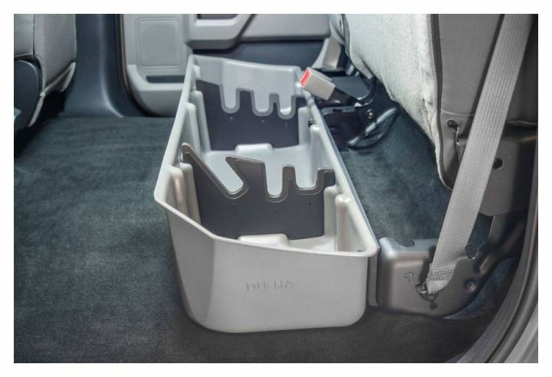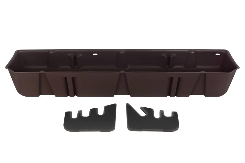 DÜHA 20113 Underseat Storage / Gun Case - Java / Brown Whether you're a contractor, sports enthusiast, or anyone who values organized and secure storage, the DÜHA Underseat Storage System is the ultimate under seat truck storage solution for seamless truck storage integration. This innovative truck storage system is stronger than factory dividers, maximizes space, enhances organization, and keeps your guns, tools, and gear safe and secure. Proudly roto-molded and Made in the USA, the DÜHA Underseat Storage System comes with a Limited Lifetime Warranty, reflecting the manufacturer's confidence in its quality and durability. The DÜHA Underseat Storage System features a durable, heavy-duty roto-molded construction which doesn't allow for flexing and bending. It also includes an easily removable two-piece gun rack/organizer, making it compliant with legal gun case regulations in most states. This allows you to safely store up to three guns, one of which can have a scope. You can also remove the dividers to store larger items. The DÜHA Underseat Storage System seamlessly integrates into your truck's interior, providing a factory-like appearance. It's make/model-specific fit guarantees optimal use of available space without taking up leg room. Elevate the organization and security of your truck's interior with this reliable and purpose-built under seat storage system. Fitment Notes: Factory storage tray will need to be removed. Minimal tools are required. Instructions are available with purchase or at our resources page. This DÜHA Underseat Storage System is custom designed to fit specific Y/M/M SuperCrew trucks and will NOT fit SuperCab models. Quick Installation: Simple installation with easy instructions Durable Construction: Much more durable than factory dividers. Heavy duty roto-molded construction doesn't allow for flexing and bending Seamless Integration: Exact fitment for your Y/M/M truck. Please double check part numbers Space Optimization: Better use of under seat space to fit guns, tools and gear Includes dividers/gun racks for customized organization