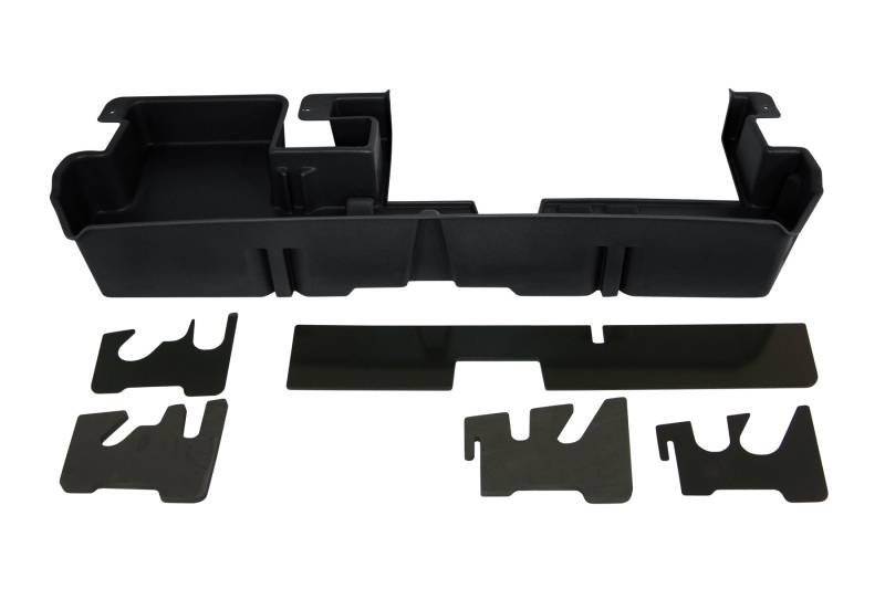 DÜHA 60061 Underseat Storage / Gun Case - Black Whether you're a contractor, sports enthusiast, or anyone who values organized and secure storage, the DÜHA Underseat Storage System is the ultimate under seat truck storage solution for seamless truck storage integration. This innovative truck storage system is stronger than factory dividers, maximizes space, enhances organization, and keeps your guns, tools, and gear safe and secure. Proudly roto-molded and Made in the USA, the DÜHA Underseat Storage System comes with a Limited Lifetime Warranty, reflecting the manufacturer's confidence in its quality and durability. The DÜHA Underseat Storage System features a durable, heavy-duty roto-molded construction which doesn't allow for flexing and bending. It also includes an easily removable two-piece gun rack/organizer, making it compliant with legal gun case regulations in most states. This allows you to safely store up to two guns, both of which can have a scope equipped. You can also remove the dividers to store larger items. The DÜHA Underseat Storage System seamlessly integrates into your truck's interior, providing a factory-like appearance. It's make/model-specific fit guarantees optimal use of available space without taking up leg room. Elevate the organization and security of your truck's interior with this reliable and purpose-built under seat storage system. Fitment Notes: If you DO have a factory subwoofer this will fit. If you DO NOT have a factory subwoofer, please see part #60051 and #60052. Instructions are available with purchase or at our resources page. This DÜHA Underseat Storage System is custom designed to fit specific Y/M/M double cab trucks. Quick Installation: Simple installation with easy instructions Durable Construction: Much more durable than factory dividers. Heavy duty roto-molded construction doesn't allow for flexing and bending Seamless Integration: Exact fitment for your Y/M/M truck. Please double check part numbers Space Optimization: Better use of under seat space to fit guns, tools and gear Includes dividers/gun racks for customized organization