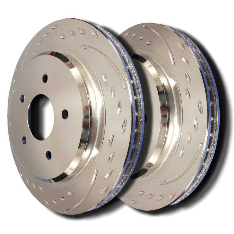 Distinctive Style. Elite Performance.\nStand out with SP Performance Diamond Slotted Rotors. Featuring a unique diamond slot pattern, these rotors combine stunning aesthetics with high-performance braking—perfect for drivers who demand both form and function.