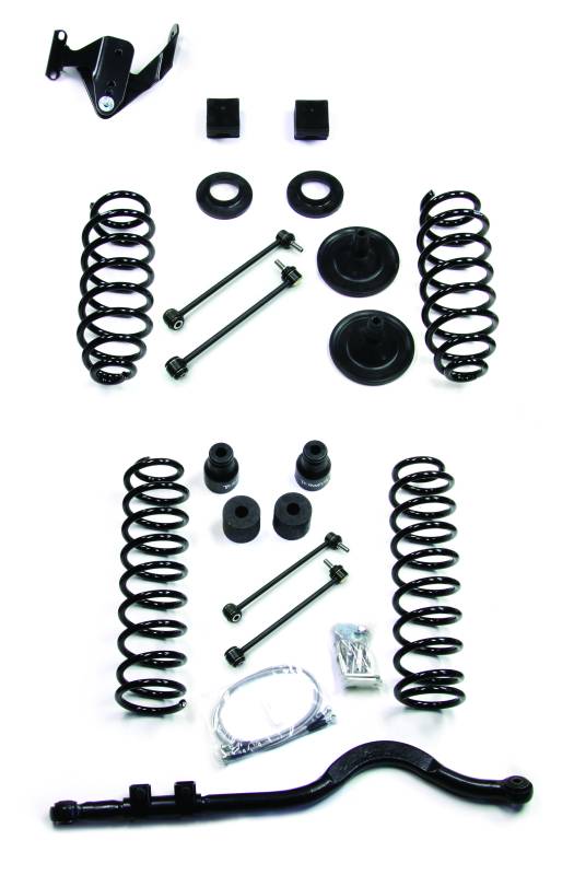 The TeraFlex JK 4dr: 3"" Coil Spring Lift Kit w/ Track Bar includes just the basic lift components only and doesn’t have the drivability of a full suspension system. Requires longer preset or adjustable control arms to correct suspension geometry.
