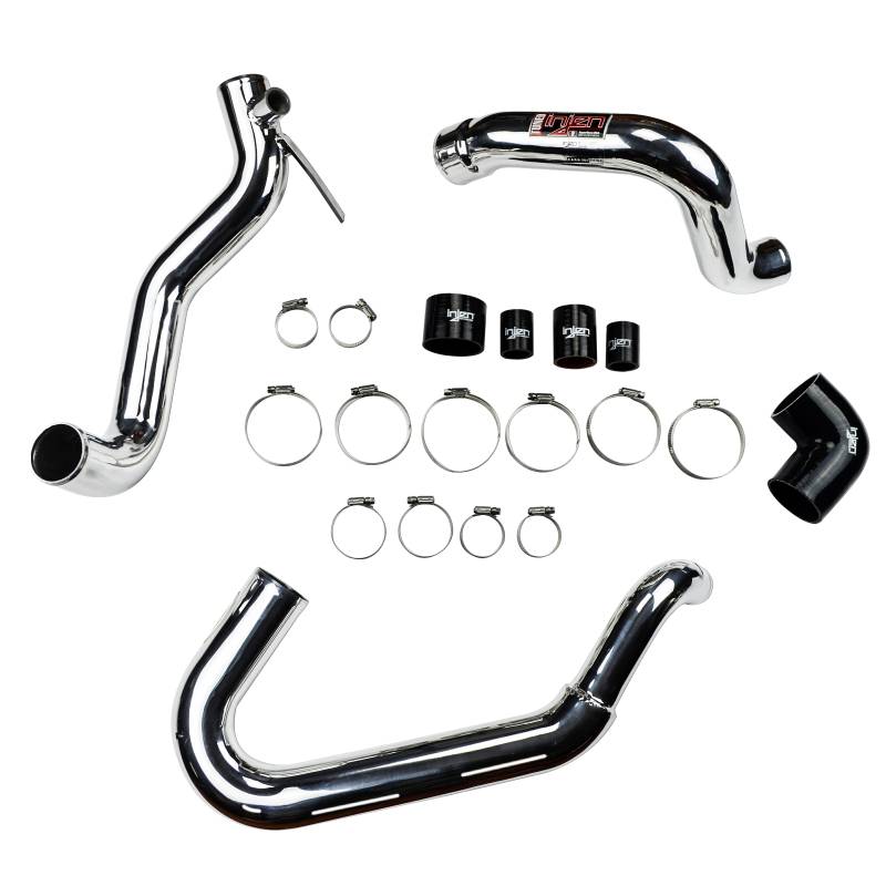 Polished SES Intercooler Pipes Injen Intercooler pipes are the next logical step in your search for power gains. The Injen staff has put in the time and work to develop parts that perform. These Intercooler pipes are no different, after investigating the OE piping, our engineers identified numerous areas where improvement was necessary. The Injen performance intercooler pipes are constructed of mandrel-bent aluminum piping that eliminates the rust buildup present in the most stock pipes. Injen's Automotive Grade Silicone Couplers and Stainless Steel Band Clamp with Inner Protective Liner are also included in this kit. The Injen technology Silicone Couplers are on a new level. Compared to normal silicone, Injen Automotive Grade Silicone Couplers provide superior resistance to heat, pressure, fuel, and oil. This effectively increases the life of the couplers by preventing leaks and blowouts. The Injen Intercooler Pipe Kit is designed to work with the stock as well as the Injen performance intercooler. This Intercooler pipe performance kit, like all of our Injen performance parts, includes the Injen Limited Lifetime Warranty. Manufactured from 2.50"Lightweight 6061-T6 Aluminum Piping Hot and Cold side pipes included Stainless Steel Band Clamp with Inner Protective Liner Automotive Grade Silicone Couplers Unique Injen Logo Plate for a Refined Style