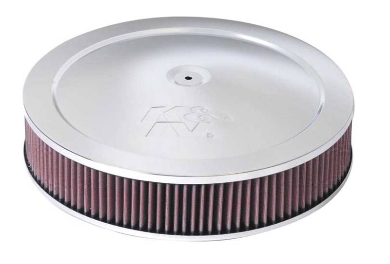 Round Air Filter Assembly K&N's custom air cleaner assemblies are designed with the racer in mind. They incorporate good looks as well as the superior air flow that you expect from K&N. These custom air cleaner assemblies are designed for use with any engine that uses a round element air cleaner housing. They incorporate our famous K&N Air Filters and provide more air flow than other assemblies of this type. Available in 4 different designs, the perfect assembly is sure to be found here. Each complete assembly comes with base, element, and top plate.