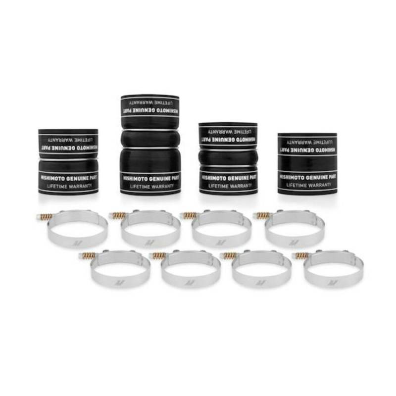 Factory-Fit Boot Kit, Black, fits Ford 6.4L Powerstroke 2008-2010 Mishimoto is proud to release a direct-fIt'silicone boot kit with DuraCore technology designed specifically for the 6.4L Ford Powerstroke. Mishimoto DuraCore technology is the synthetic material that comprises the innermost layer of all Mishimoto silicone diesel boots. Compared to normal silicone, DuraCore provides superior resistance to heat, pressure, fuel, and oil.This effectively increases the life of our boots by preventing leaks and blowouts.To add even more reliability this kit includes Mishimoto constant-tension T-bolt clamps for accurate and consistent holding power.As with all our products