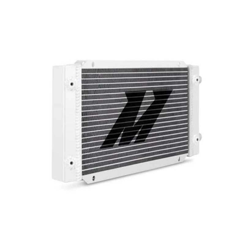 Universal Oil Cooler 19-Row, Silver, Dual Pass Mishimoto has developed a brand new universal dual pass oil cooler for enthusiasts that demand the most from their vehicles.Keeping oil temperatures in control is crucial for a successful day at the track, street or strip.High engine oil temperatures can promote engine wear and lead to serious internal engine damage.The Mishimoto dual pass cooler is constructed from high pressure internal tubes rated to 120psi and is built to handle the most extreme conditions.The Mishimoto dual pass cooler offers an extremely large surface cooling area thanks to 8mm external fins so you can concentrate more on driving and less on temperatures.These coolers also possess the ability to cool all of your automotive fluids such as transmission and power steering fluid.As with all of our products the Mishimoto dual pass cooler is protected with our signature lifetime warranty. 19-row stacked-plate oil cooler for optimal fluid temperature reduction Extends life of high-wear engine components Minimal pressure loss