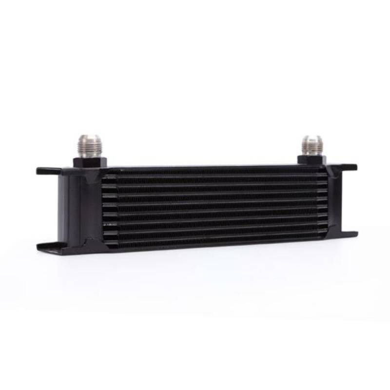 Universal Oil Cooler, 10-Row, Black Enthusiasts who push their high-performance cars to the limit understand the importance of keeping their oil temperatures low to prevent damage, or even seizure of the engine.The Mishimoto 10 Row Oil Cooler Kit will extend the life of your engine by ensuring your essential high-wear engine components such as piston rings, skirts and cam bearings are sufficiently lubricated with cooler oil. Universal fitment 10 row stacked plate cooler withstands high fluid pressures, reduces oil temperatures, and exhibits minimal pressure loss Extends life of high-wear engine components