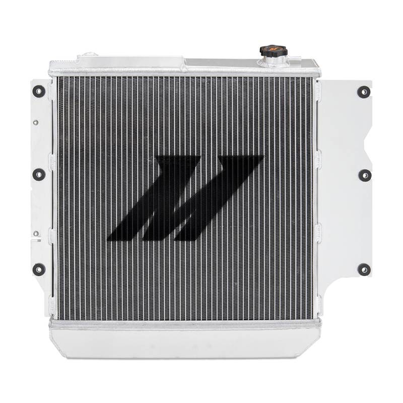 Performance Aluminum Radiator, fits Jeep Wrangler YJ/TJ 1987-2006 The Mishimoto performance aluminum radiator for the Jeep Wrangler YJ and TJ is the ideal upgrade to the stock Wrangler radiator. It is designed and specifically engineered to maximize cooling efficiency by up to 20-percent, boost engine functions and protect your car from overheating. Whether you use your Jeep Wrangler for daily driving or as a powerhouse for offroading, many people overlook the importance of installing an upgraded radiator in their engine. A stock radiator cannot handle the heat that comes along with having a great deal of horsepower. The Mishimoto Jeep Wrangler radiator features a lightweight dual core, 100-percent brazed aluminum, polished end tanks, and holds up to .36/gal more coolant. The Mishimoto radiator showed a 20degF drop in outlet temp compared to the OEM. See the Engineering Report for full details. Every Mishimoto Performance Radiator is a direct OEM fit, making installation effortless, no cutting or modification is required. All Mishimoto radiators come with a lifetime warranty. Full aluminum construction including durable, TIG-welded end tanks Features a two-row, 1.88-in thick core Increases fluid capacity by 68-percent over stock