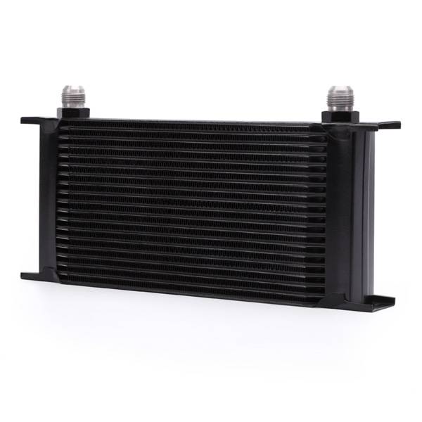 Universal Oil Cooler 19-Row, Silver Enthusiasts who push their high-performance cars to the limit understand the importance of keeping their oil temperatures low to prevent damage, or even seizure of the engine.The Mishimoto Universal 19 Row Oil Cooler will extend the life of your engine by ensuring your essential high-wear engine components such as piston rings, skirts and cam bearings are sufficiently lubricated with cooler oil. 19-row stacked-plate oil cooler for optimal fluid temperature reduction Extends life of high-wear engine components Minimal pressure loss