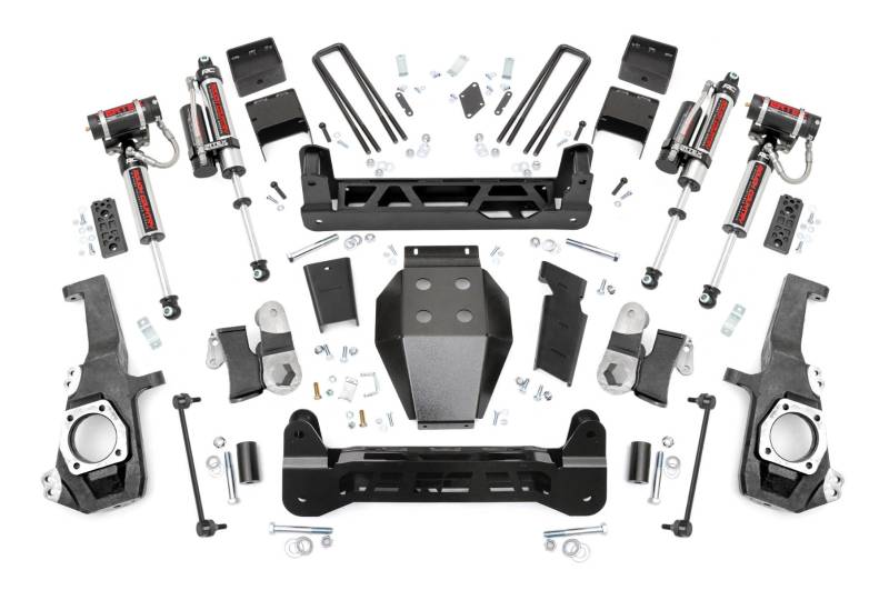 Transform Your HD With Confidence: Upgrade your fourth or fifth-generation Chevy/GMC 2500HD/3500HD with Rough Country's 5-Inch Non-Torsion Drop Suspension Lift Kit. This high-clearance system adds serious attitude and off-road capability to your truck, delivering the height you need to run 35-inch tires, all while maintaining a clean, integrated factory look underneath thanks to its non-torsion drop design.Engineered for a Sleek, Factory-Fit Appearance: Unlike traditional kits that leave torsion bars hanging low and exposed, Rough Country's innovative non-torsion drop design keeps everything tucked up and streamlined. You'll enjoy unmatched ground clearance and a sharp, OEM-style appearance that complements the aggressive stance of your HD truck.Built for Strength and Precision: The kit includes rugged, laser-cut front and rear crossmembers crafted from durable steel for a precise, bolt-on fit. The signature "RC" logo adds a bold touch up front, while the heavy-duty differential skid plate offers extra protection during off-road adventures. Lifted knuckles, rear anti-wrap blocks, and a range of premium shock options, like Rough Country's nitrogen-charged N3s or the high-performance Vertex reservoir, ensure you get the ride feel and handling you demand.Ride Quality You Can Rely On: This lift system retains factory ride comfort and control, keeps axle geometry true to spec, and preserves OEM track width. No drivetrain modifications or differential drilling required, just a clean install and predictable performance, mile after mile.Backed by Rough Country's Limited Lifetime Replacement Guarantee: Drive with peace of mind knowing your lift kit is covered for the long haul.