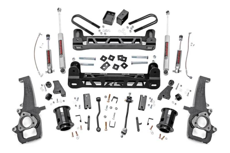 Transform Your RAM 1500's Performance and Style: Elevate your newer model RAM 1500 with Rough Country's 6-inch Suspension Lift. This complete system delivers rugged durability, improved off-road capability, and clearance for up to 35-inch tires, all while maintaining the smooth, controlled ride you expect.Heavy-Duty Construction for Lasting Reliability: Built with laser-cut steel components, this kit includes high-clearance front and rear cross-members for superior obstacle navigation. A tough skid plate protects your differential from harsh terrain, and lifted cast knuckles ensure proper suspension geometry after the lift.Balanced Ride Quality On and Off Road: Equipped with nitrogen-charged N3 shocks, valved specifically to provide a smooth blend of comfort and off-road control, this kit keeps you confident on every trail.Limited Lifetime Warranty for Peace of Mind: Backed by Rough Country's industry-leading limited lifetime warranty, your suspension investment is protected for the long haul.