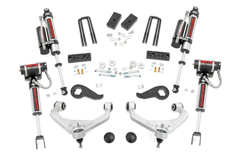 Take Your GM HD Higher: Transform your truck with Rough Country's 3-inch Bolt-On Lift Kit, delivering aggressive good looks, added clearance, and unbeatable performance at an incredible value. This kit is engineered specifically for GM HD models to provide a perfect blend of strength, drivability, and style.Engineered for Easy Installation: Featuring a 100% bolt-on installation, this kit requires no cutting, drilling, or special tools, making it one of the easiest lift kits to install on the market. The fully reversible design also lets you return your truck to stock height at any time without hassle.Unmatched Strength and Geometry: At the heart of this kit are high-articulation forged solid aluminum upper control arms. Built with a one-piece design to eliminate weak welded points, these arms deliver superior strength and durability. Optimized axle geometry is maintained through differential drop brackets, keeping driveline angles in check to reduce wear while extending long-term performance. POM ball joints come pre-installed for quicker setup and smoother articulation, with the option to upgrade to a bold red finish for added style.Premium Ride Quality: This kit includes a set of forged torsion bar keys for uncompromising rigidity, as well as Rough Country's nitrogen-charged N3 shocks for improved performance on and off-road. For those looking to push performance even further, this kit is compatible with all shock options, including Rough Country's premium Vertex reservoir shocks.All-Inclusive, All-Around Performance: With everything you need right out of the box, this lift kit provides the clearance to run larger tires while delivering a clean, leveled stance from front to rear. Backed by Rough Country's Limited Lifetime Replacement Warranty, this kit is the perfect choice for truck owners who demand strength, reliability, and a factory-quality ride at a fraction of the cost.