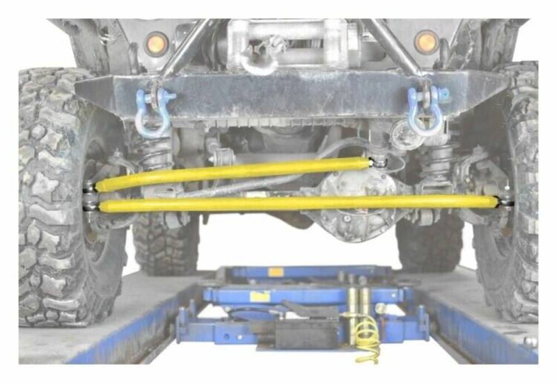 The Steinjager Crossover Steering Kit is a drastic upgrade from the factory steering. It is manufactured from 1.50" x 0.25" wall DOM tubing and is paired with 3/4" Chrome Moly Rod Ends. This kit will work with or without the factory sway bar. Grade 8 hardware is included. Installation will require the spindles and pitman arm to be drilled out to 5/8". The adjustable length for this part is 37.0" to 38.0". If the dimension from your pitman arm bolt hole to the passenger spindle bolt hole is out of this range, you will need a different pitman arm or our "standard" Crossover Steering Kit. It is recommended that you either have 4.00" or less of backspacing or a minimum 16" rim. Factory 15" rims may rub the heim joints.