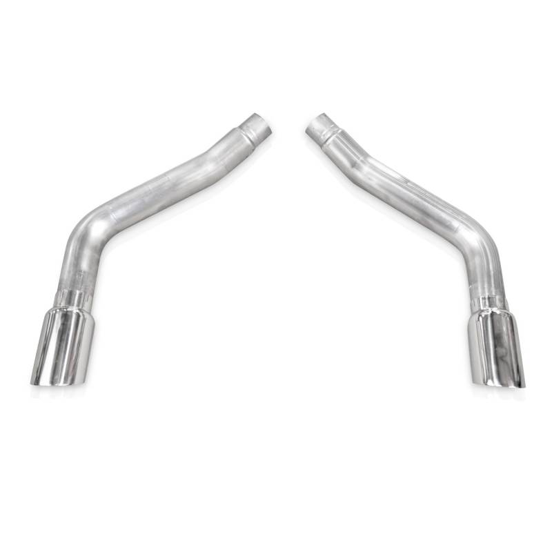 2010-2015 Chevy Camaro muffler delete system, features 3" muffler deletes and mirror-polished 4" tips, with double-wall, conical construction. Comes complete with hangers, and requires minimal fabrication (a simple cut of factory exhaust tubing near factory mufflers).