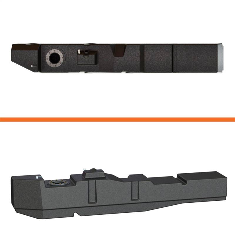 XXL Replacement Mid-Ship Fuel Tank 67 Gallon Transform your driving experience with the Titan 67 Gallon Extra Capacity Mid-Ship Replacement Fuel Tank, designed specifically for 1999-2007 Ford F250 and F350 pickups with Crew Cab, Long Beds, and Power Stroke engines. With this innovative upgrade, you're not just investing in a larger fuel tank - you're investing in unparalleled freedom and convenience on the road. Picture this: no more frequent stops at the gas station, no more worries about running out of fuel on long journeys, and no more compromises on where you can go or what you can do. With the Titan 67 Gallon tank, you have the power to stay on the road longer, tackle more ambitious projects, and explore farther than ever before. Whether you're towing heavy loads, embarking on cross-country adventures, or simply navigating daily commutes, the extra capacity provided by a Titan XXL Tank gives you the confidence and peace of mind to go the distance, no matter where the road takes you. Crafted from our renowned military-grade, cross-linked polymer material, this tank sets the standard for durability and reliability. With a thickness of at least 1/4", it's built to outlast all competitors, standing strong against the toughest conditions. Backed by a lifetime warranty, you can trust in its quality and performance for the long haul. The tank comes complete with a black-coated, galvanized steel mounting strap and front support system. Plus, with its exclusive low fuel trap design all 67 gallons are usable capacity. We could advertise a larger capacity, but we chose to only market usable capacity to set honest and reasonable expectations for our customers. Super Durable Military Grade Polymer, Cross-Linked Polyethylene (XLHDPE) Nearly 200 Times Less Heat & Cold conductive than Metal Tanks No Condensation, No Corrosion, and Easy to Install Compatible with most bio-diesel fuel Exclusive TITAN Sending Unit Mounting System