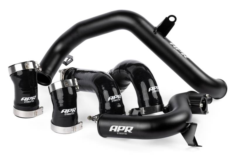 The APR Charge Pipes and Charge Hoses System is a comprehensive upgrade for the 2.0T EA888 Gen 4 engine that addresses each component between the turbocharger and intercooler, and from intercooler to throttle body. The system increases air flow through smooth an uninterrupted airflow paths, and provides increased performance and reliability by upgraded each of the factory components. This kit is comprised of five kits otherwise sold on their own.