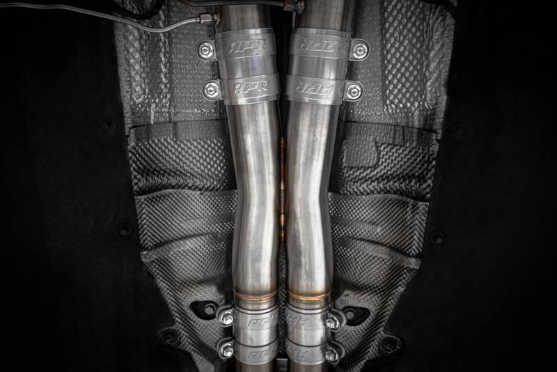 For vehicles with an 3" midpipes and an APR Catback Exhaust System, the APR X-Pipe is a must have. This upgrade creates a smooth transition between the two systems and integrates an x-pipe that reduces backpressure. This upgrade smooths out the exhaust note for a more refined sound profile while also increasing peak torque. Like the rest of the system, the x-pipe is constructed from T304 stainless steel, beautifully TIG welded, and includes all new APR slip clamps.