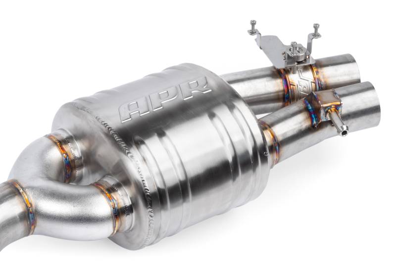 The APR Catback Exhaust System personalizes your sound and performance. Beautifully hand-crafted T304-stainless-steel components adorn the system with stunning TIG-welding throughout. Our straight-through brushed-finished mufflers smooth the exhaust note to a deep growl, without adding restrictions. Strong high-quality bracketry and OEM-style clamps hold the system steadily in place, making the install or removal a snap, and fitment simple, yet precise. Cast 2.75" to dual 2.5" rear splitter creates an ultra-smooth transition, steadily feeding exhaust gasses out of the system. Our cast valve housings enable the vehicle to be fitted with the factory electronic valve actuators, retaining OEM valve operation. An optional center muffler / Center muffler delete is available.