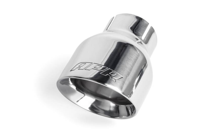 Our polished slash-cut double-walled 4" exhaust tips upgrade the rear of the vehicle dramatically. The motorsport-inspired tips tuck nicely into the factory valance, gently following the valance's curves and demanding all the right attention in all the right places. Each tip features an engraved APR logo. Each kit is sold as a set of two tips.