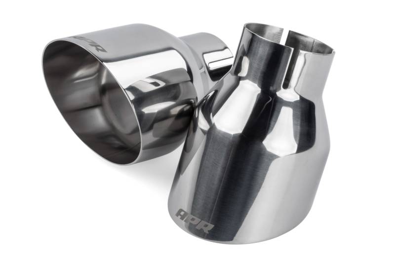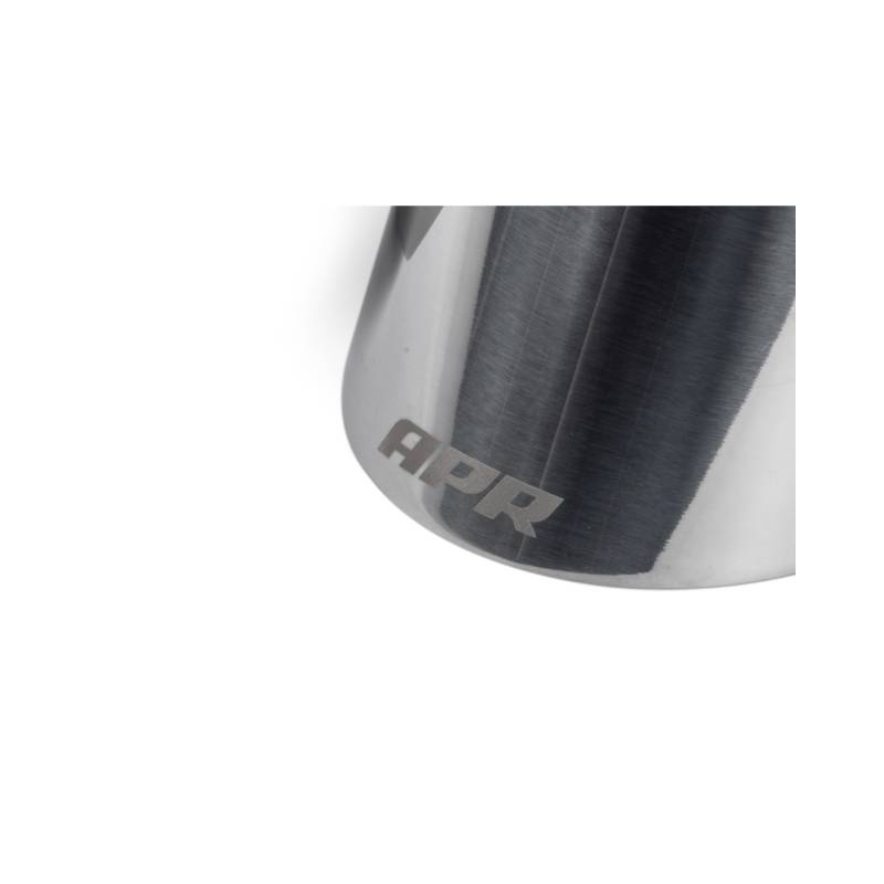 Our polished slash-cut single-walled 4" exhaust tips upgrade the rear of the vehicle dramatically. The motorsport-inspired tips tuck nicely into the factory valance, gently following the valance's curves and demanding all the right attention in all the right places. Each tip features a laser etched APR logo. Each kit is sold as a set of two tips.