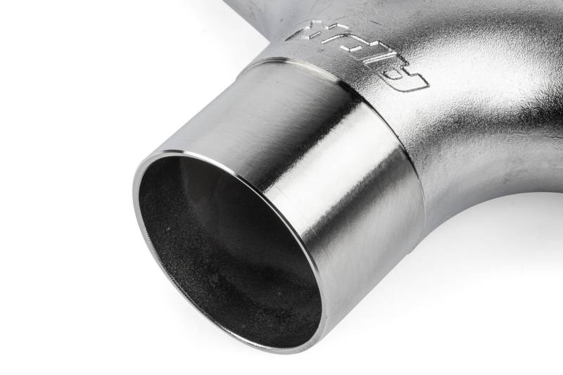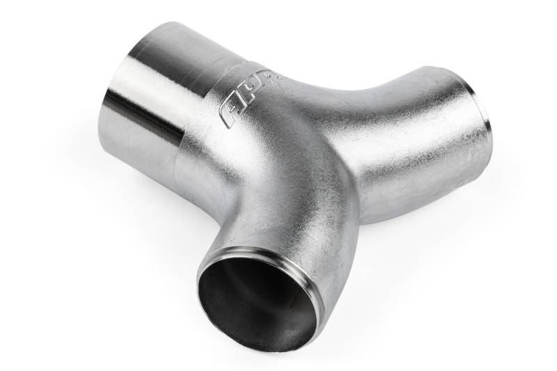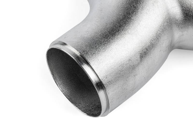 APR's premium line of cast exhaust splitters are now available! Perfect for the do-it-yourself enthusiast fabricating a custom exhaust system, these splitters offer uninterrupted flow in a premium package that will stand the test of time.\nCast from T304 Stainless Steel, the splitter allows for easy connection to a 76mm (3") pipe and splits at 150 deg to a dual 63.5mm (2.5") pipe. Your exhaust pipes simply butts up to the CNC-machined section of the casting making for a clean transition and easy clamping point with a slip clamp. On the other ends it provides a flat and clean welding point for dual 63.5mm (2.5") pipes (16 gauge / 1.6mm or thinner). This results in a high flow design with a smooth internal surface and internal transition. Each part comes electropolished giving it a bright and clean finish, and an indented APR logo on one side lets you display the part with pride.