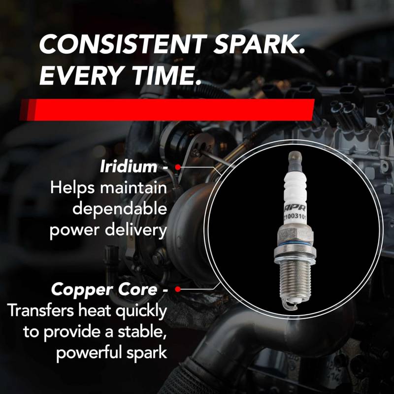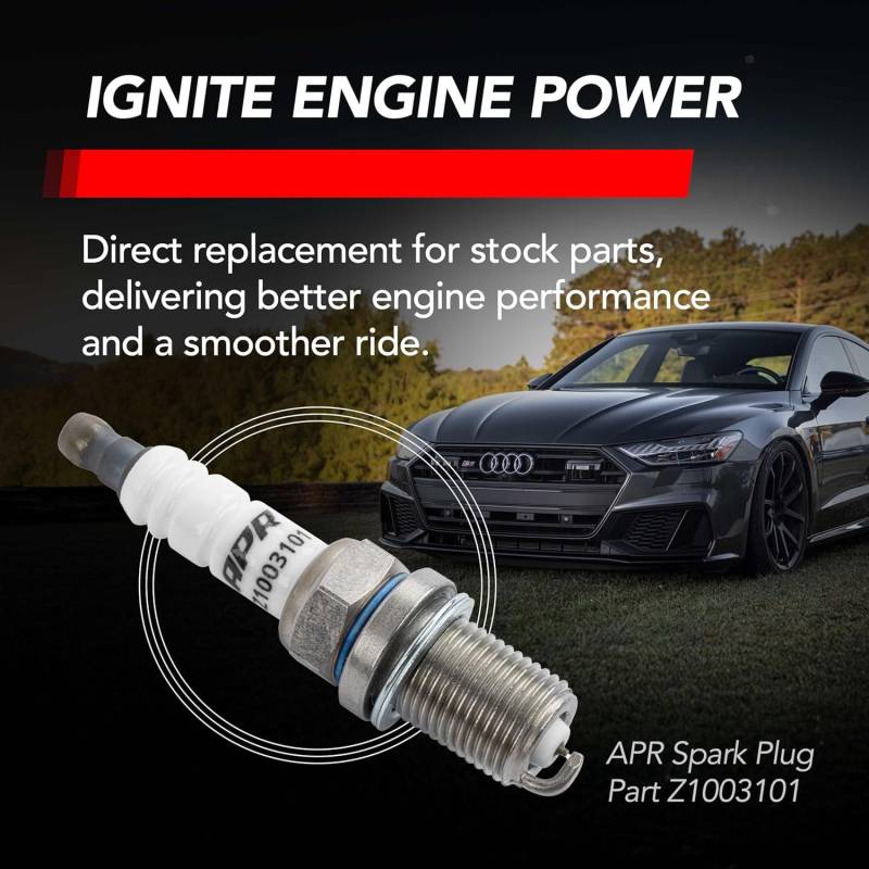 Refresh your ignition system in one shot with APR Iridium Pro Spark Plugs and pair with APR Ignition Coils – engineered to work together for a stronger, more consistent spark. Each is a direct-fit upgrade designed to support smoother idle, sharper throttle response, and reliable performance under heat and load—whether you’re stock or running higher boost and power upgrades.\nBUILT FOR PERFORMANCE: APR Iridium Pro Spark Plugs are made from high-grade materials, engineered to enhance ignition and combustion, and provide smooth, consistent engine power for daily drivers, dedicated racing enthusiasts, and everyone in between.\nA DIRECT-FIT UPGRADE: Upgrade your OEM spark plug on stock vehicles and on tuned engines with higher boost or upgraded power components, APR spark plugs are engineered to manage increased demands. Direct replacement for stock OEM parts 06H905601A, 06Q905601E,101905631G\nIRIDIUM BENEFITS: One of the strongest materials used for spark plugs, Iridium is used to withstand high temps, is less corrosive, requires less voltage to product a strong spark, and helps deliver reliable power.\nHIGH-TEMP DURABILITY (HEAT RANGE 9): Featuring a copper core construction paired with an iridium electrode, APR’s high heat dispersal “cold plugs” regulate combustion temperatures. This means consistent performance, even under extreme conditions.\nCOMPATIBILITY: Compatible with Audi A3 A4 A5 A6 A7 A8 Allroad Q3 Q5 Q7 R8 RS4 RS5 S4 S5 S6 S8 SQ5 TT TTRS & TTS. Lamborghini Gallardo Huracan & Aventador. Porsche Cayenne & Panamera. VW Arteon Atlas Beetle CC Eos Golf Golf R GTI Jetta Passat Tiguan & Touareg\nMORE POWER WITH APR: Pair APR spark plugs with APR ignition coils for maximized performance in your in PQ35/45 engine. Z1003101 works with Ignition Coil Part Numbers MS100208, MS100209, MS100210.\nTRUSTED IN THE U.S. FOR OVER 25 YEARS: Founded in 1997, APR is Headquartered in Opelika, Alabama and has become a global leader in quality and reliable performance aftermarket products for Volkswagen, Audi, Porsche, and other vehicles.\nIncludes: One iridium spark plug (Z1003101).