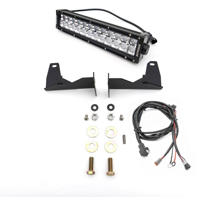 ZROADZ Front Bumper Center LED Kit; Incl. [1] 12 in. LED Straight Double Row Light Bar And Universal Wiring Harness; Mounts Behind Center Opening Of Bumper Grille;
