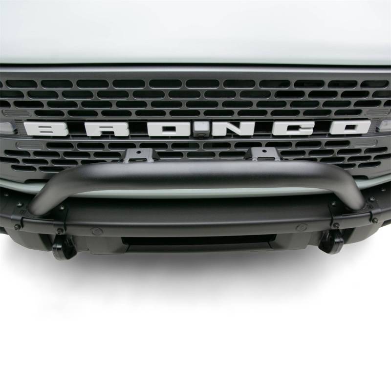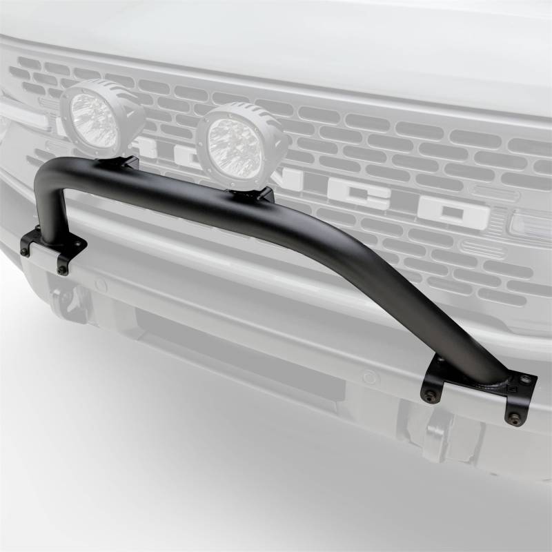 ZROADZ Off Road Products NEW Pre-Runner Baja Series Bars for the FORD Bronco are designed to enhance your Ford Bronco's overall appearance and provide a functional forward facing mounting system for LED lights. Commonly called a Bull Bar, ZROADZ's aggressive forward design, oversized 2-Inch tubing and integrated LED mounting easily transforms your factory Ford Bronco Modular Bumper into a full custom bumper without the custom price. Complete kits include a Ford Bronco Pre-Runner Baja Bar, (2) 4-Inch-High Powered LED lights in White or Amber and a wiring harness with relay and toggle switch. Already have LED lights, we have options with only the Pre-Runner Baja bar and no Lights available too The main hoop is manufactured from high strength 2-inch mild steel tubing and welded to heavy gauge base plates that bolt directly to your Ford Broncos Factory Modular Bumper. Installation is a breeze and accomplished by simply removing several bolts, installing the hoop, and reinstalling the hardware, that's it. ZROADZ'S Pre-Runner Baja Bars are finished in an all-Black, Low-Gloss Textured powder coated finish for Durability and come standard with a Limited Lifetime Structural Warranty and 3-Year warranty on the finish. All ZROADZ Offroad Products are Designed & Engineered in Corona, Ca, USA
