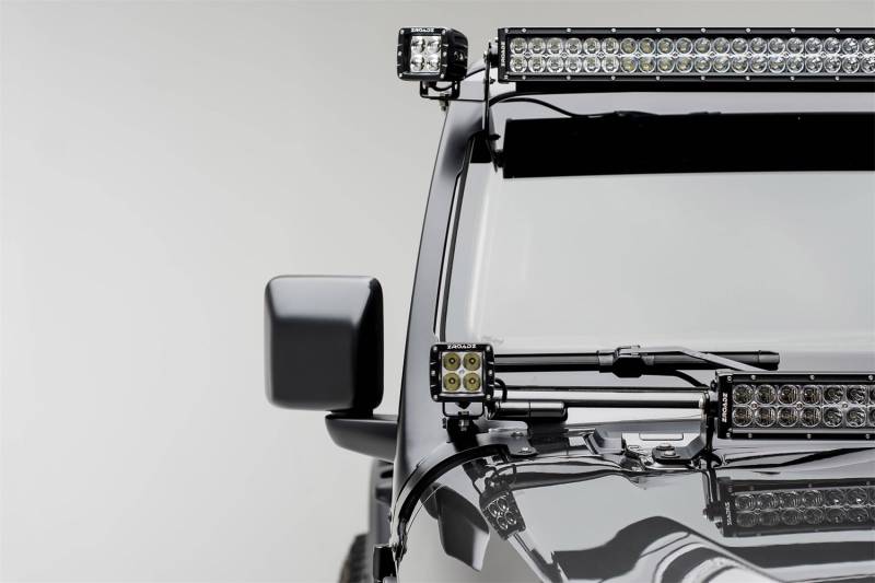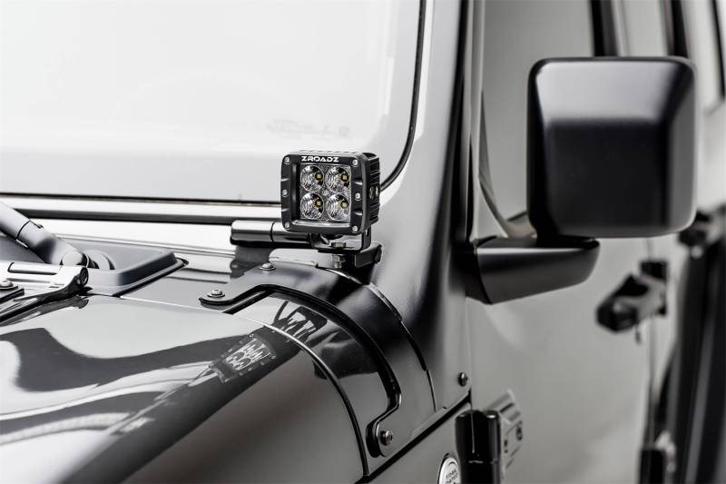 ZROADZ Jeep Wrangler Roof LED Mounts are the most robust roof mount light brackets on the market. Manufactured from laser cut 1/8 in. mild steel, and formed on engineered metal stamping dies. This industry exclusive design allows the roof brackets to contour to the A-Pillar of your Jeep and provide a clean appearance when installed. ZROADZ roof brackets and kits feature heavy duty solid rubber gasket for a secure and vibration free installation. ZROADZ Roof LED Mounts are available in complete kits with light and wiring harness, or as brackets only for mounting common and popular LED light bars. ZROADZ Front Roof LED Mounts are designed and made in USA.