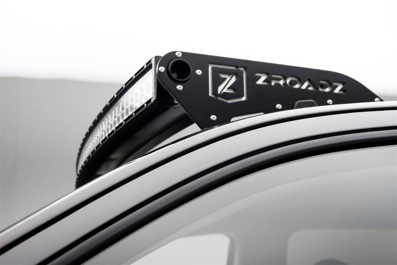 ZROADZ Roof LED Mounts are the most robust roof mount light brackets on the market. Constructed from laser cut 3/16 in. mild steel, ZROADZ roof brackets and kits feature our patented single thru-bolt attachment to provide a secure mount with minimal exterior penetration. Completely block out moisture and seal the roof with the provided rubber and a heavy duty solid rubber gasket for a secure and watertight installation. The patented thru-bolt fastener provides a convenient method to run wires into the cab without the worry of weather-stripping wind noise and leaks or other subpar wire routing methods. ZROADZ Roof LED Mounts are available in complete kits with light and wiring harness, or as brackets only for mounting common and popular LED light bars. ZROADZ Front Roof LED Mounts are designed and made in USA and protected by United States Patent No. 10,525,872.