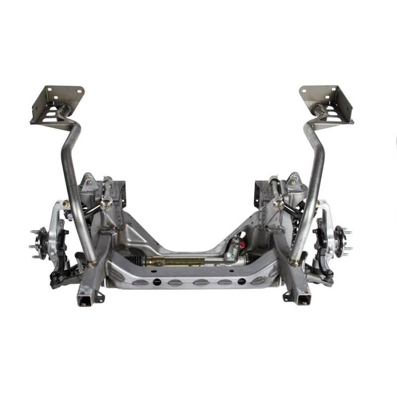 Detroit Speed's front frame is a bolt-in replacement for the original stock subframe. It improves the handling and ride quality by utilizing Detroit Speed's unique suspension geometry. It is the ONLY Chevy II frame in the aftermarket industry with OEM quality stamped crossmembers for improved structural rigidity. The bay bars feature rigid integral hood hinge mounting and are hidden when used with Detroit Speed's Chevy II Inner Fenders package. Spring Rate: 400 lbs/in Spring Free Length: 10 in Single Adjustable Shock: Includes all features of base shock with 'Detroit Tuned' valving plus installed rebound adjustment with the simple turn of a knob while providing excellent ride quality on the street. SBC and LS engines have been designed as a direct bolt-in to this frame. The Detroit Speed frame has been designed, engineered, and developed for the road and track. This frame blends the benefits of current OEM technology and aftermarket performance into one product! The frame is sold in bare metal, uncoated and unassembled. If the powder coat option is purchased, assembly is included. TIG welded tubular upper and lower control arms OEM Quality stamped crossmembers Aluminum body coilover shocks with "Detroit Tuned" valving Coilover springs "Detroit Tuned" power rack and pinion steering