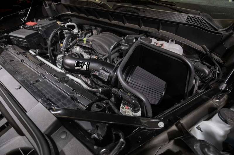 Performance Air Intake System K&N is the inventor of the Air Intake System and has over 50 years of experience in the performance filtration industry. Proudly designed and manufactured in the USA, this premium cold air intake system is specifically designed for your Escalade, Sierra 1500, Silverado 1500, Suburban, Tahoe, Yukon, and is dyno tested to provide a guaranteed increase in horsepower. It features a high flow intake tube, custom heat shield, and oversized K&N Washable Dryflow Synthetic Air Filter. This Intake system replaces the restrictive OEM air box to provide an improved driving experience for daily driving or towing. It installs easily in about 60 minutes and is backed by a No-Hassle Lifetime Limited Warranty and will not void your factory warranty.