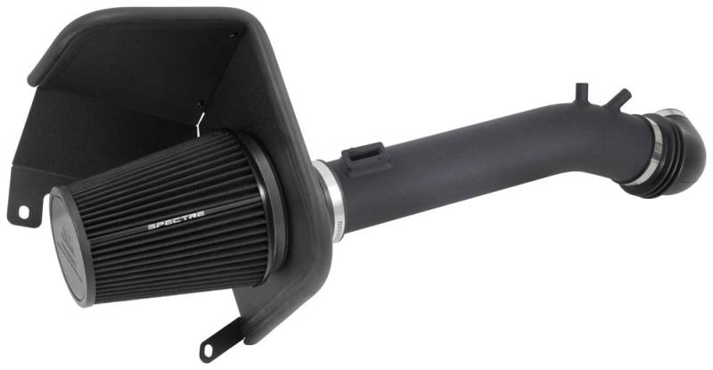 Spectre Air Intake Kit'spectre air intake systems are designed to get more horsepower and torque from your vehicle while working to protect your engine from harmful debris. This air intake system comes with a black washable, reusable low restriction Spectre air filter, black powder coated aluminum intake tube and a black powder coated steel heat shield to help prevent heated engine air from entering the intake inlet. Spectre air intakes come with the necessary rubber boots, velocity stack, stainless steel clamps and all necessary hardware for an OE fit and finish.