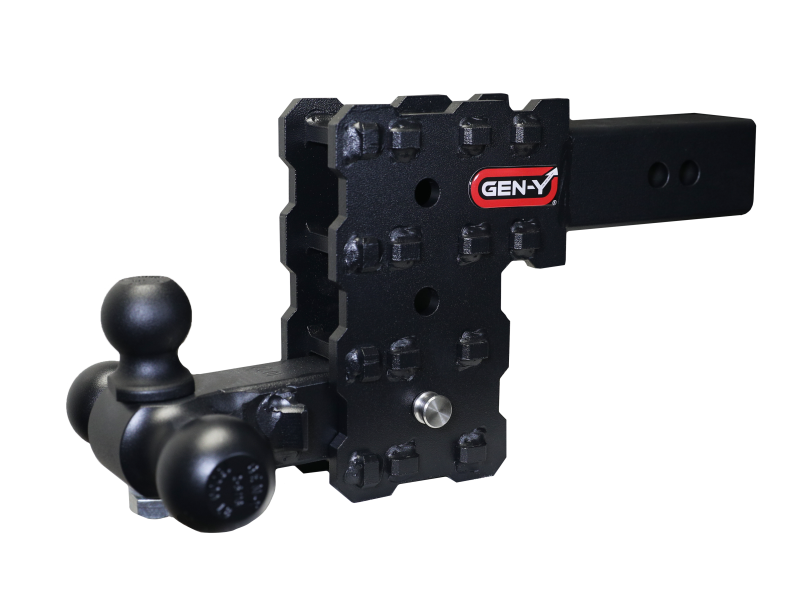 PHANTOM-X Drop Hitch The PHANTOM-X 16K Drop Hitch is a competitively priced hitch perfect for heavy-duty towing. The PHANTOM-X Hitch is compatible with 2.5" truck receivers and is available with a dual-ball mount or a tri-ball mount. It is also offered with a pintle lock, allowing users the ability to tow with a lunette ring trailer. GEN-Y's innovative stacked tube design allows customers the ability to adjust the ball mount up or down in order to achieve the right amount of drop every time! Fully Adjustable Tri-Ball 1.6K Tongue Weight 16K Towing Capacity
