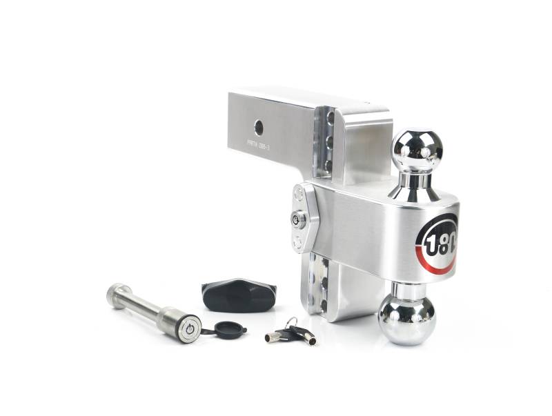 180 Hitch - Drop Hitch w/Chrome Combo Ball - 6" Drop for 3" Shank w/Hitch Pin The 180 Hitch by Weigh Safe is the definition of adaptability and ease. Made of aircraft-grade 6061 aluminum, it's available in stainless steel or chrome-plated steel combo tow balls! This hitch can be used in both the drop and rise positions! Built-in gauge not available with this 180 Hitch model. Chrome-Plated Steel Combo Ball: Quickly switch from a 2-5/16" tow ball to a 2" tow ball by flipping the slider 180 degrees 6" Adjustable Ball Mount: 6” drop & 7" rise (hitch can be used in the drop or rise position), adjusts in 1" increments so you get the perfect position for any trailer height Industry Leading Weight Ratings: rated for 21,000 lbs. max GTW and 2,200 lbs. MTW in the drop or rise position Stowability: Can be rotated under the vehicle and stored while not in use. Excludes 3" shank sizes Keyed-Alike Locks: Includes a dual-pin lock and hitch pin lock keyed with the same key code - one key for all locks