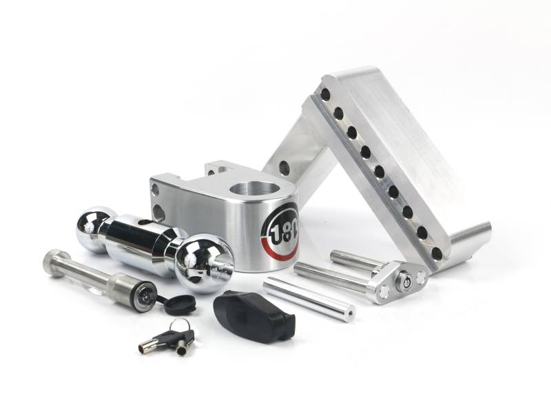 180 Hitch - Drop Hitch w/Chrome Combo Ball - 6" Drop for 2" Shank w/Hitch Pin The 180 Hitch by Weigh Safe is the definition of adaptability and ease. Made of aircraft-grade 6061 aluminum, it's available in stainless steel or chrome-plated steel combo tow balls! This hitch can be used in both the drop and rise positions! Built-in gauge not available with this 180 Hitch model. Chrome-Plated Steel Combo Ball: Quickly switch from a 2-5/16" tow ball to a 2" tow ball by flipping the slider 180 degrees 6" Adjustable Ball Mount: 6” drop & 7" rise (hitch can be used in the drop or rise position), adjusts in 1" increments so you get the perfect position for any trailer height Industry Leading Weight Ratings: rated for 12,500 lbs. max GTW and 1,500 lbs. MTW in the drop or rise position Stowability: Can be rotated under the vehicle and stored while not in use. Excludes 3" shank sizes Keyed-Alike Locks: Includes a dual-pin lock and hitch pin lock keyed with the same key code - one key for all locks